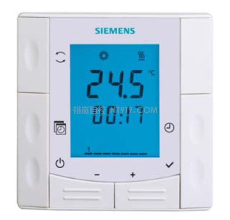 西门子地暖温控器RDE410 的特点:• 工作电压 AC 230V• 带开/关控制输出的双位控制• 单一外部输入温度传感器(QAH11.1 / QAA32)•