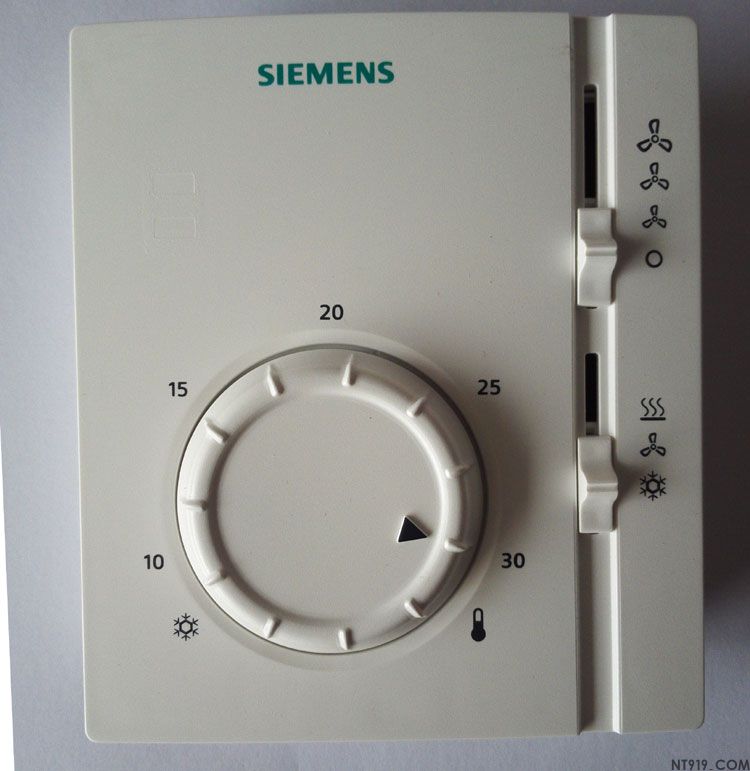 西门子温控器RAB11.1,适用于中央空调温度控制,主要功能有供热,制冷,通风,三速手动控制